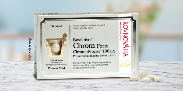 Bioaktivní Chrom Forte od Pharma Nord obsahuje ChromoPrecise - organické kvasnice s chromem, jejichž účinnost i vstřebatelnost byly potvrzeny výzkumem.